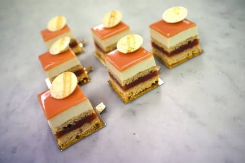4. Cool to 40 degrees Celsius then pour onto the Sable Breton base.